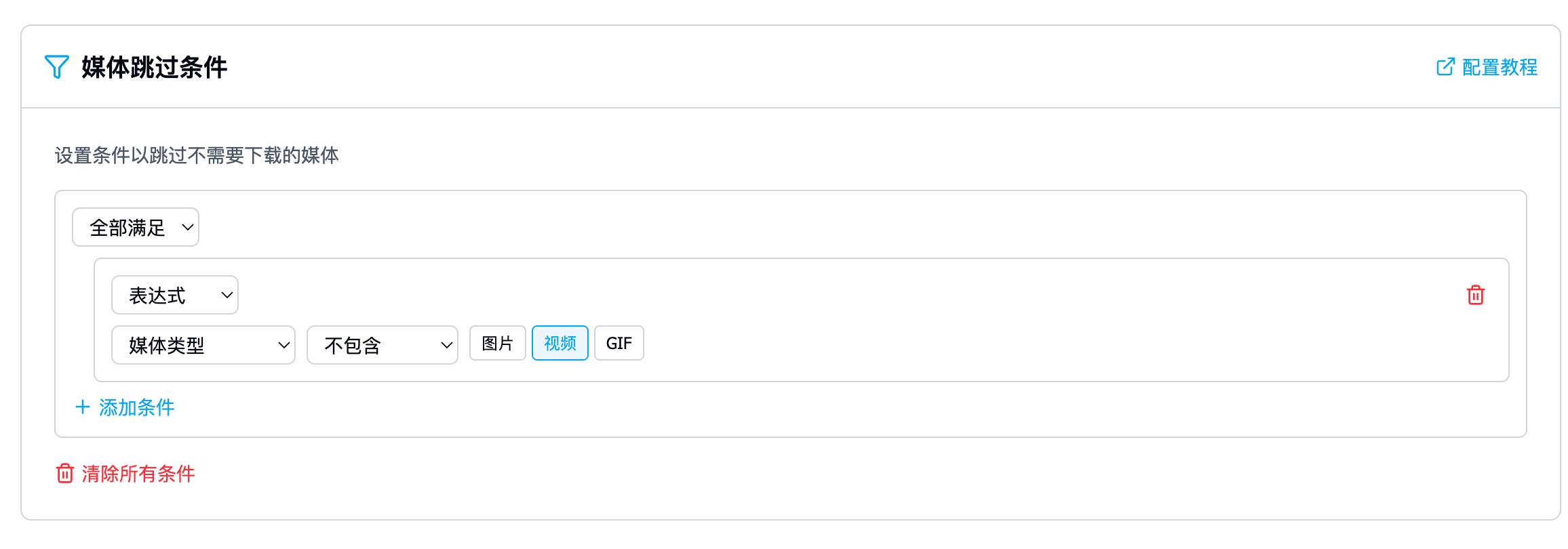 - 作用:当推文中的媒体(图片、视频、GIF)符合特定条件时,不下载媒体文件。
