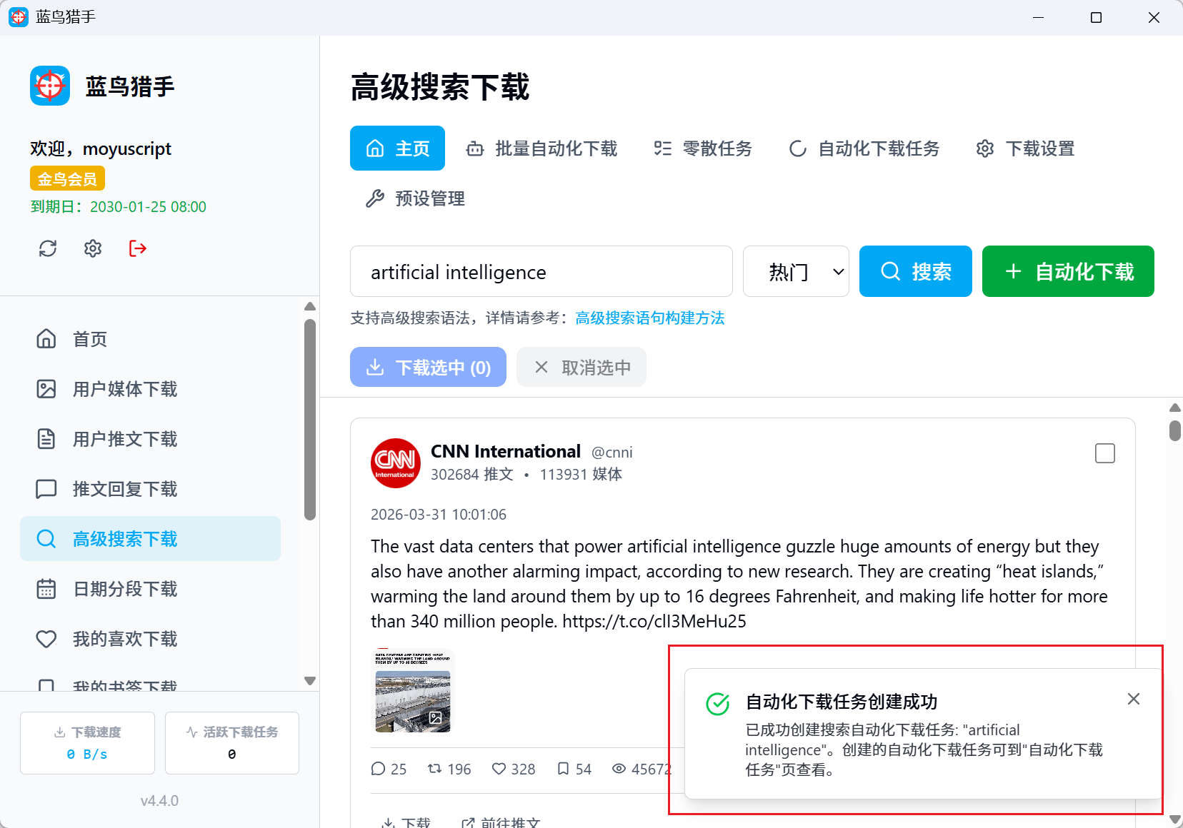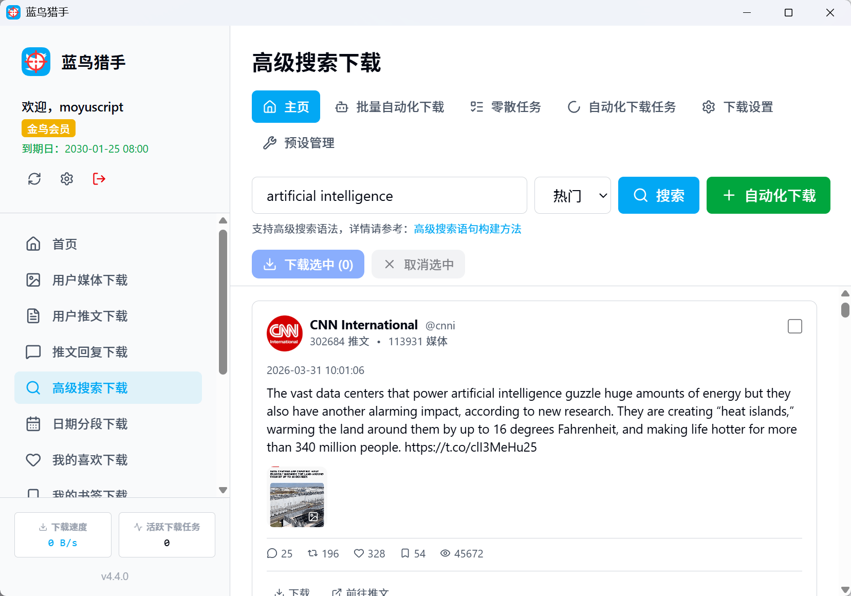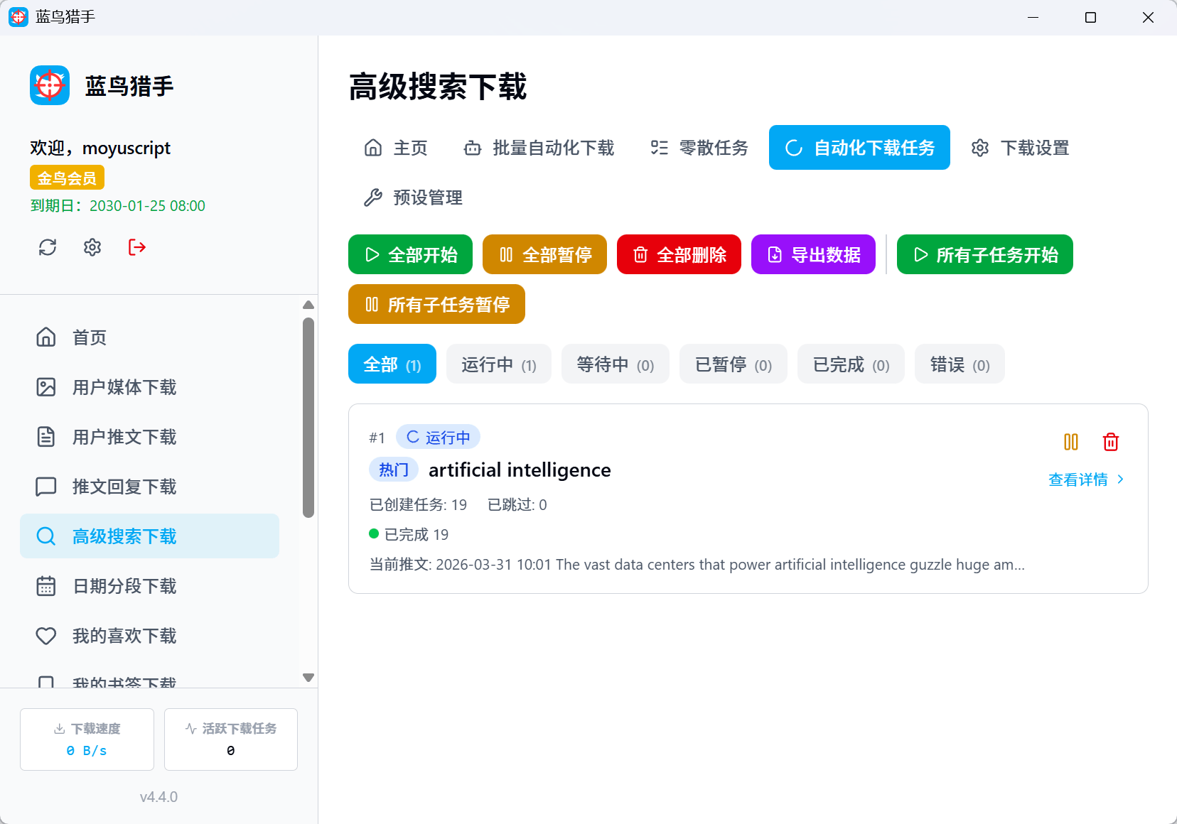 【案例分享】大学生论文必备:用“蓝鸟猎手”高效采集推特数据(以“Artificial Intelligence”为例)"